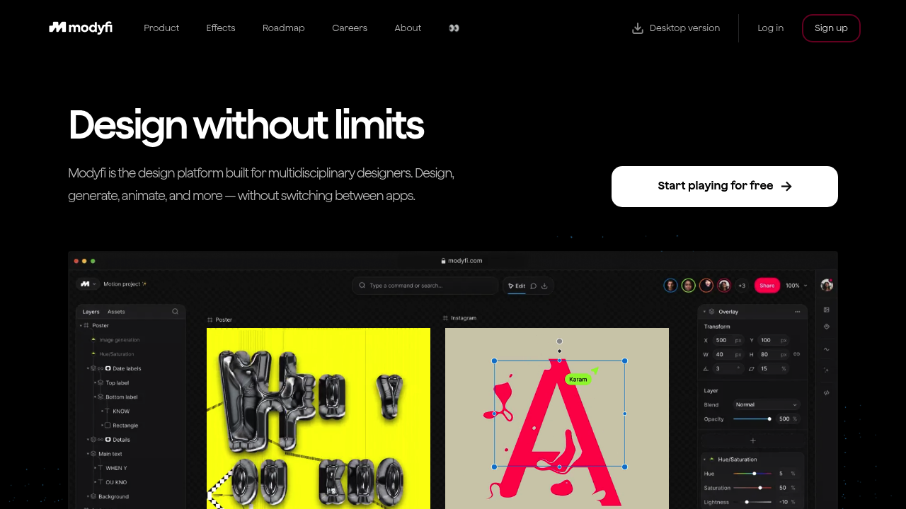 Modyfi is a comprehensive design platform tailored for multidisciplinary designers, offering a seamless experience without the need to switch between different applications. It supports a wide range of design activities, including design creation, image generation, animation, and more.