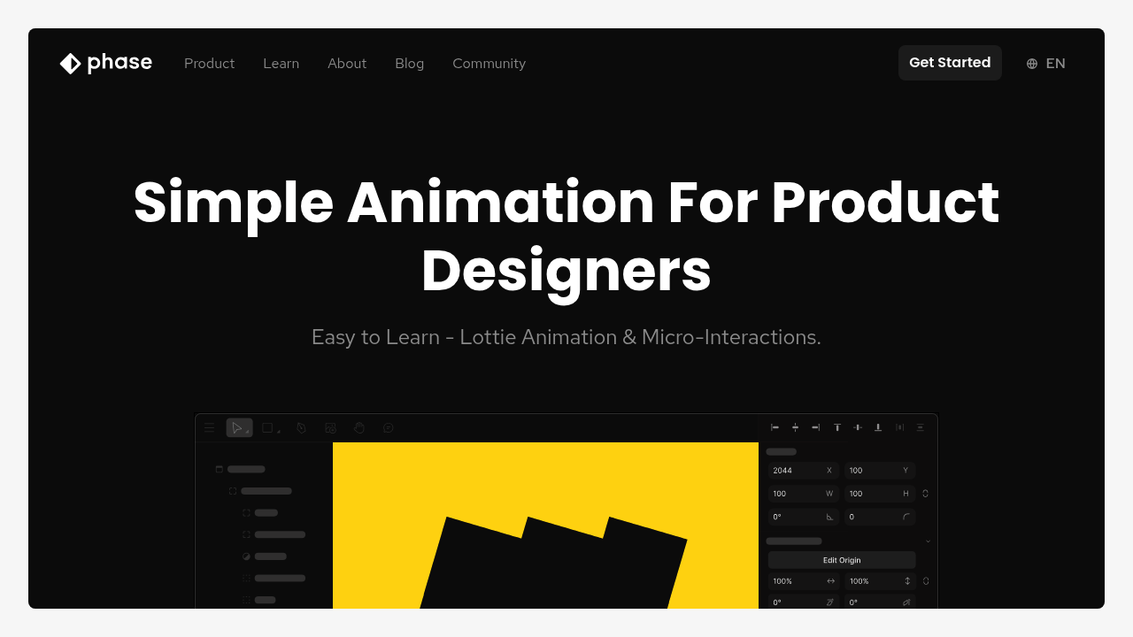 Phase bridges the gap between design and animation, allowing product designers to create and integrate animations without needing to master complex software.