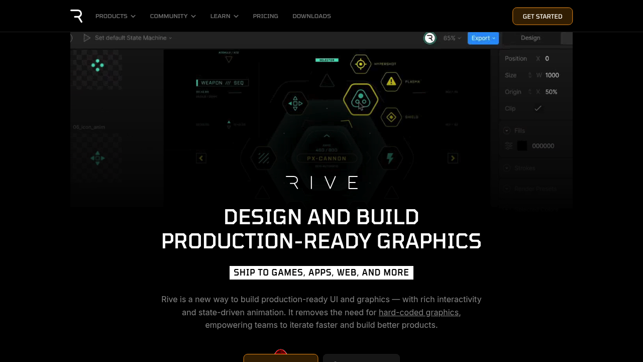 Rive is a new way to build production-ready UI and graphics — with rich interactivity and state-driven animation. It removes the need for hard-coded graphics, empowering teams to iterate faster and build better products.