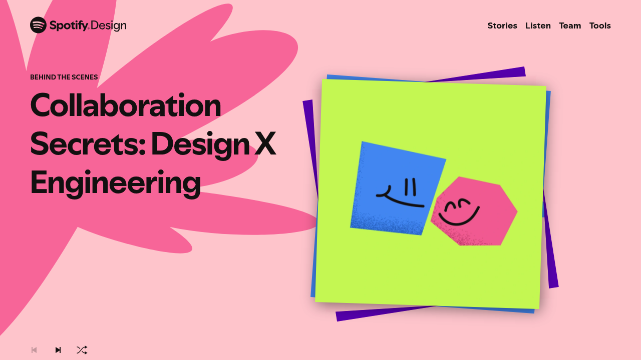 Spotify Design is a cross-disciplinary product design community focused on creating exceptional user experiences and fostering meaningful connections between listeners and creators. Their work revolves around designing and building interfaces that are both intuitive and engaging.