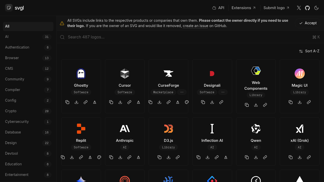 It's important to respect the intellectual property rights of the logo owners. Always contact the owner directly if you need to use their logo for commercial purposes. If you are a logo owner and wish to have your SVG removed from the library, you can easily create an issue on GitHub to request its removal.